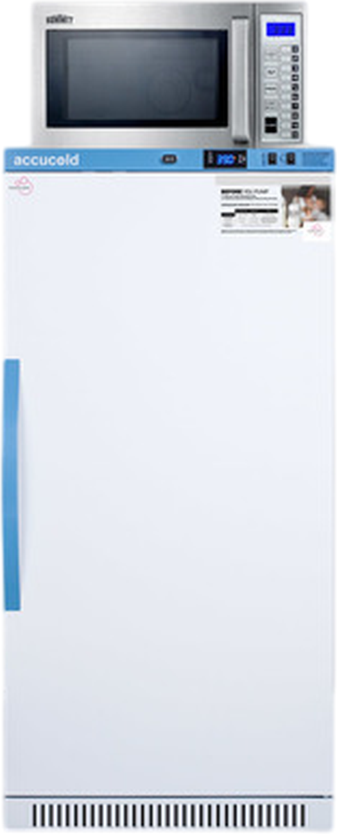 The MLRS8MCLK-SCM1000SS combines Accucold’s MOMCUBE 8 cu.ft. all-refrigerator for breast milk storage with Summit’s stainless steel commercial microwave. The complete unit has a slim width under 24 inches providing for an easy fit in a variety of spaces. The refrigerator's reversible door allows for additional flexibility in unit placement.