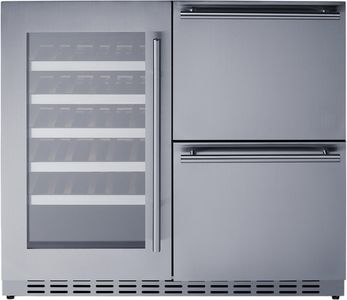 Sized at 32.38" high and just under 36" wide, the ADRWC36 is combination wine cellar and drawer refrigerator. The front-breathing design allows built-in installation under counters, with a fully finished exterior cabinet in black that also allows freestanding use. This unit is ETL-S listed to NSF-7 commercial standards for use in foodservice or residential settings.Read More